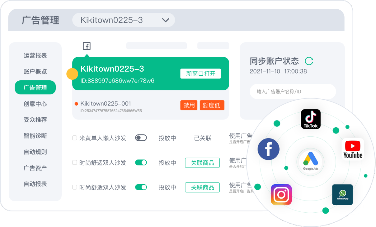 广告不优化,投入都白搭。因此我们除了将Meta(原Facebook)、Google、TikTok等主流社交媒体平台进行整合,为卖家提供一站式广告投放工具以外,还做到了将投放数据与业务行为打通,覆盖计划采购、销售运营、营销推广、会员管理、订单物流、财务人力等多个环节,帮助卖家对经营数据进行全局分析,从而快速掌握店铺经营的真实情况,实现全链路数字化管理,支撑卖家经营决策。