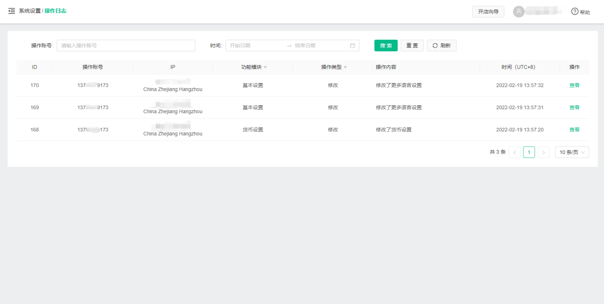 记录卖家在商家端的所有操作记录,对不同角色人员使用平台情况进行跟踪,帮助卖家实时了解平台配置变动的情况。