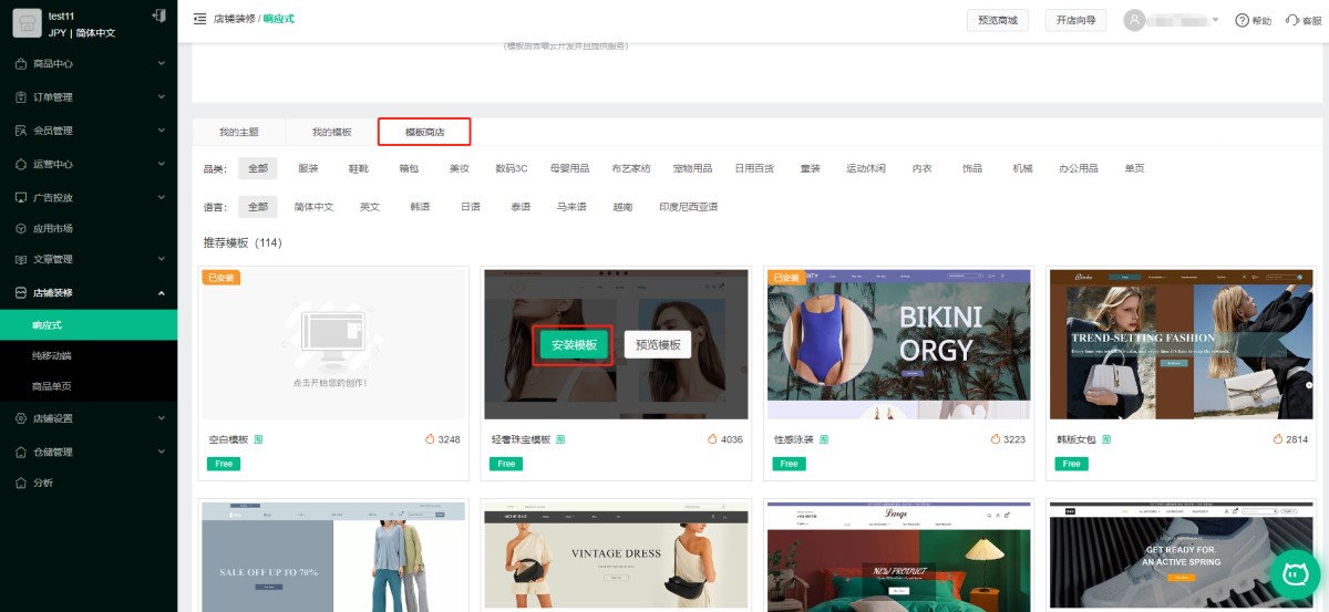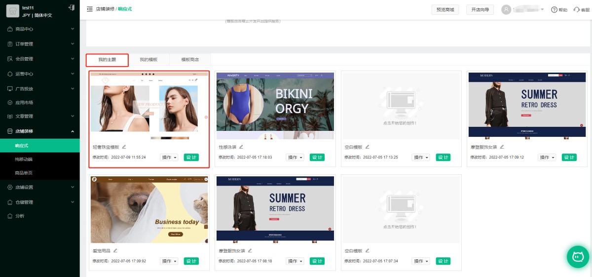 A:打开模板商店,可以任意挑选模板商店中的模板然后点击安装模板,编辑过的模板会保存在“我的主题”中。