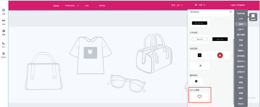 卖家可以进入店铺后在店铺装修-组件库-商品组件-容器列表中,添加心愿单组件,也可以通过组件库-按钮组件-加入心愿单,进行添加。