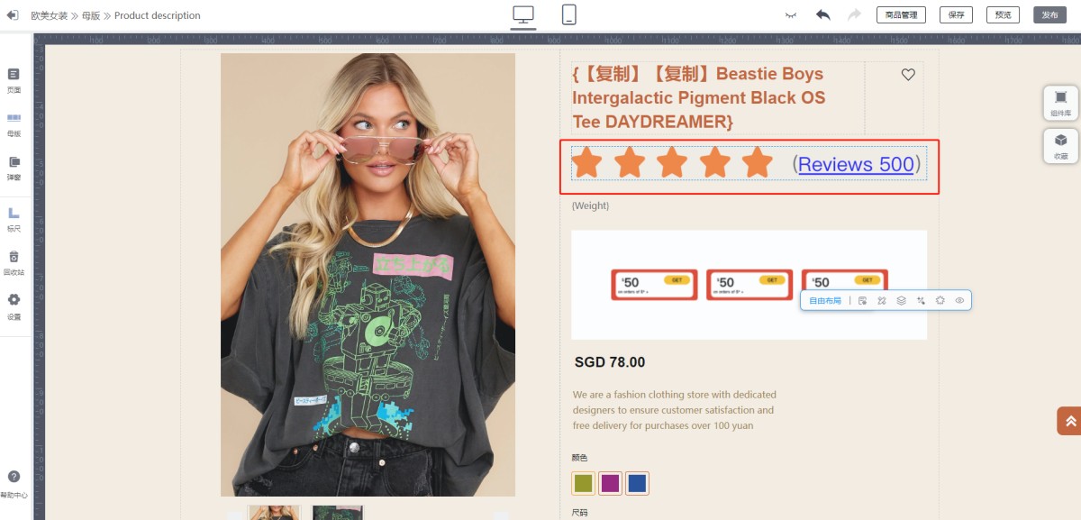 2.在商品评价插件中设置评价组件的样式,导入评价,审核及管理评价等,请点击参考商品评价操作指南。