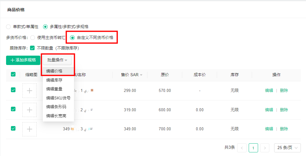如店铺支持沙特(币种SAR)和阿联酋(币种AED)两种币种,当买家切换到阿联酋,商品显示币种也会从SAR切换到AED。