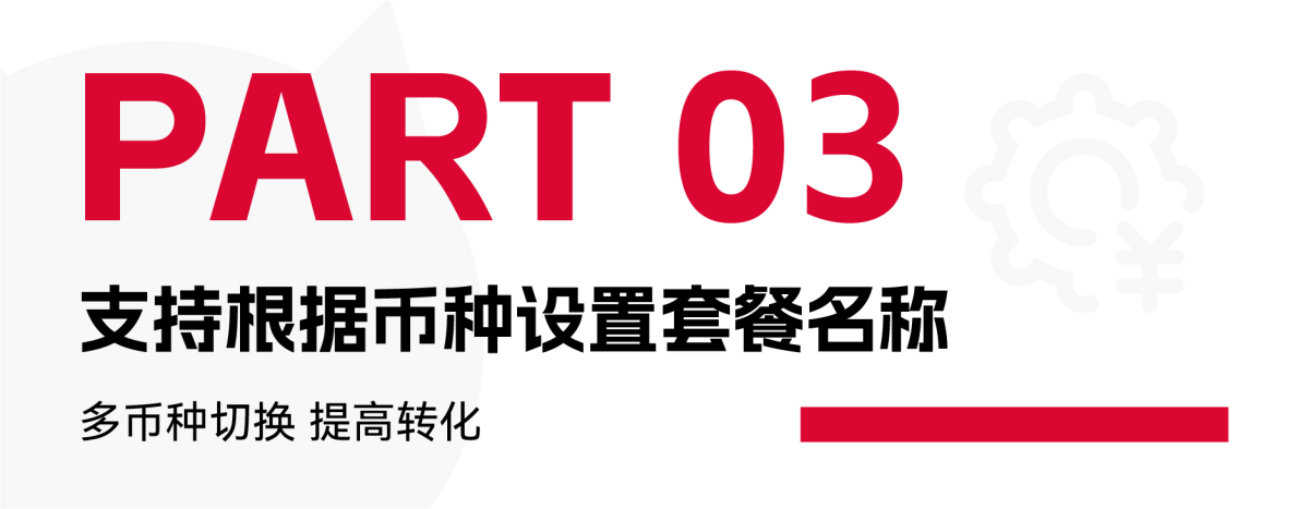 对于多币种店铺,我们建议根据币种设置套餐名称,它可以根据用户IP自动切换商品的显示币种,使多币种与多语言结合,提升消费者的浏览体验。