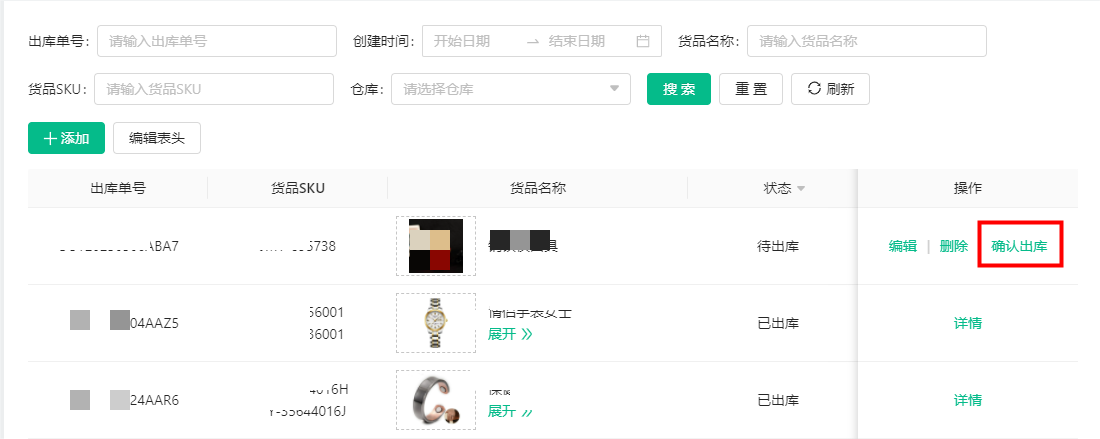 创建出库单过程中,可能会出现库存又出单的情况,因此保存后还需「确认出库」。