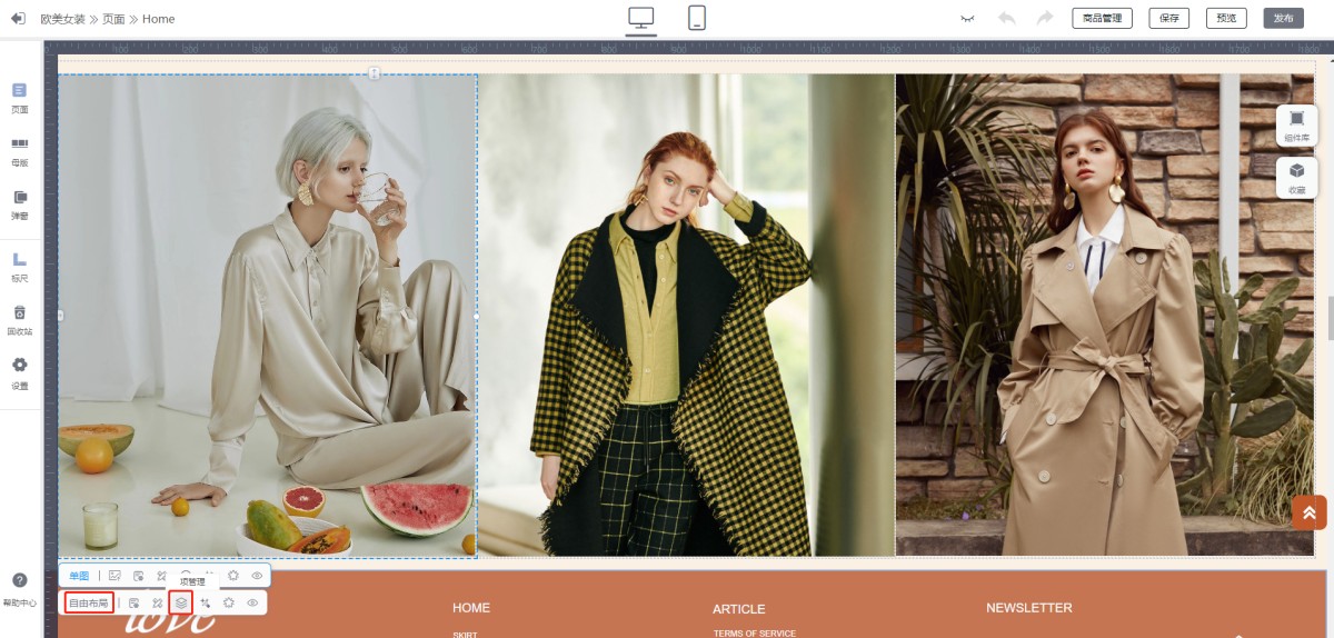 A:选中图片所在的自由布局,点击自由布局设计面板中的项管理