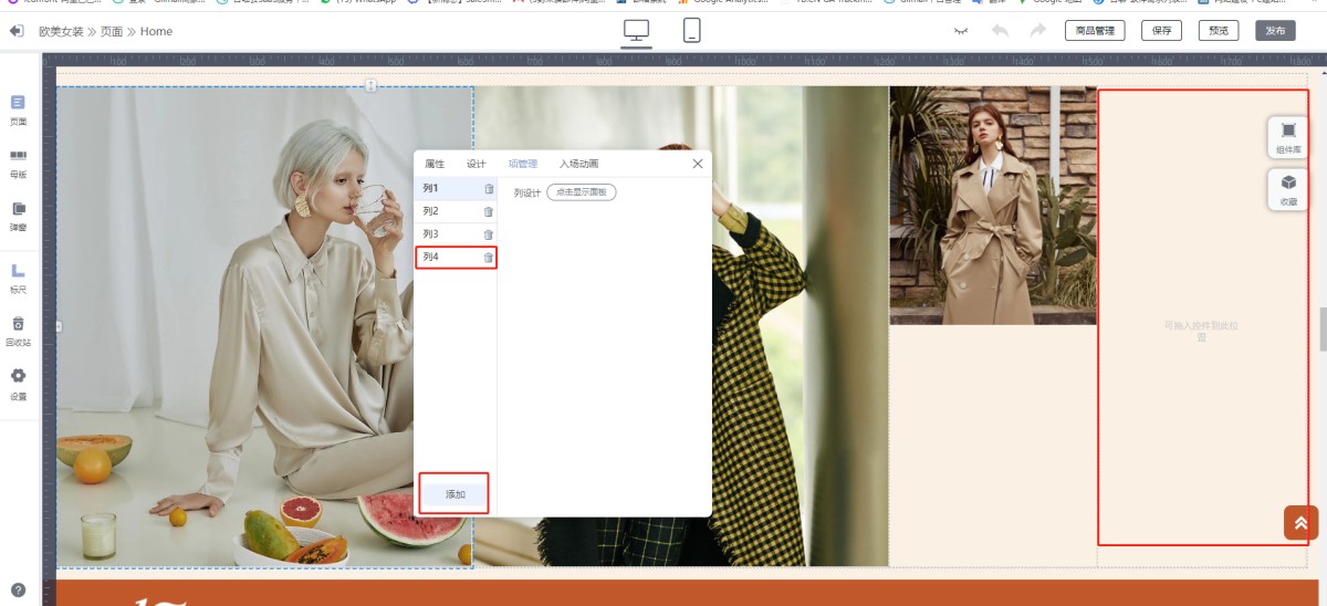 2). 点击 添加,添加一列新的自由布局。
