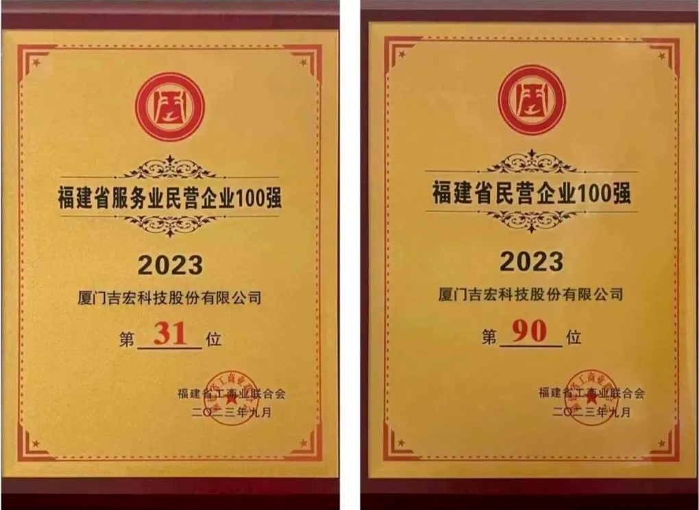 吉宏股份荣登2023福建民营企业100强、服务业100强两大榜单!
