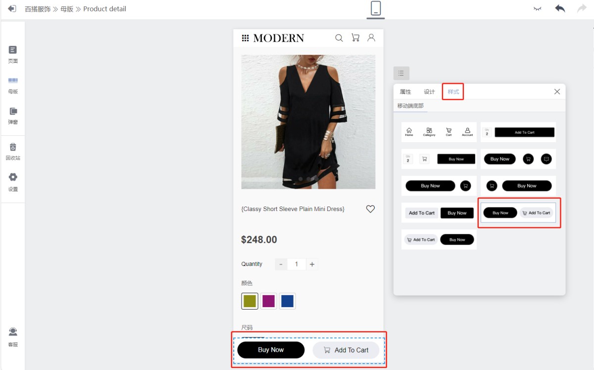 如何修改纯移动端商品详情页的底部导航?