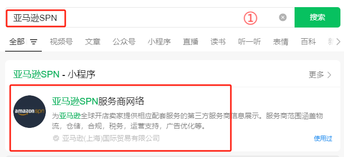 ①在微信搜索“亚马逊SPN”,找到“亚马逊SPN服务商网络”小程序。