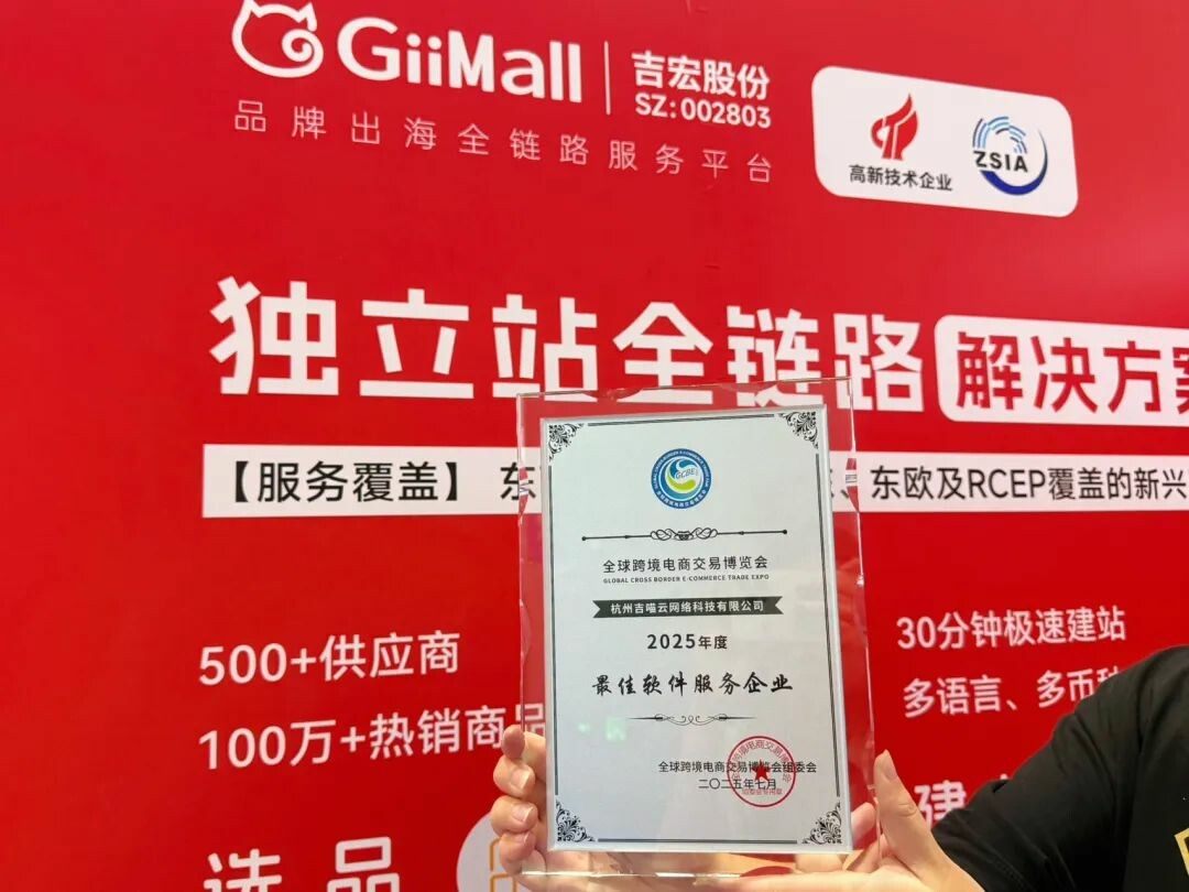 凭借优质跨境电商独立站全链路服务,GiiMall荣获本届大会颁发的“2025年度最佳软件服务企业”,再次印证了其在跨境数字化服务领域的专业实力与品牌影响力。