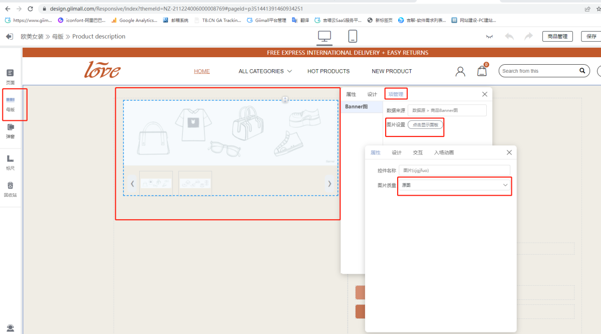 A1: Responsive editing page, click on the left: Master - Product Details Page - Select the Picture Box - Click Properties - Item Management - Picture Settings - Picture Quality. Then you can select the original image or the image pixels you need. As shown below (the size of the picture is preferably 800*800 and above)