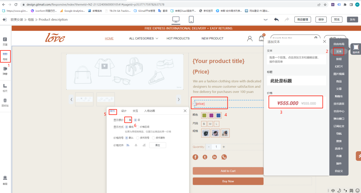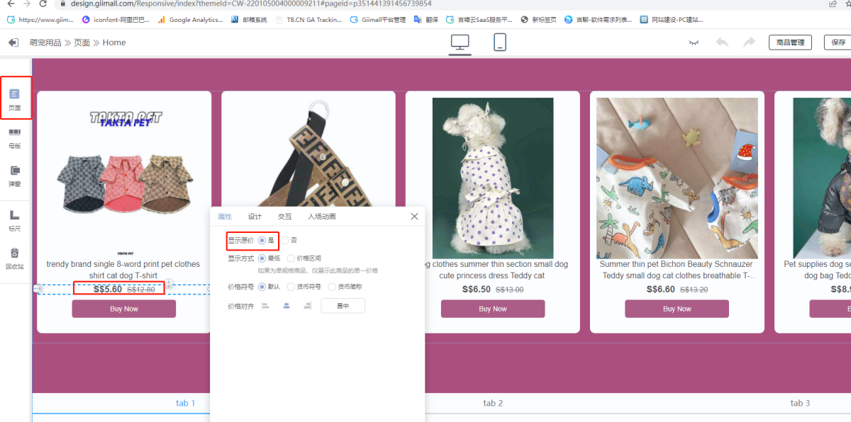 Q: The original price has been set in the product center, why is it not displayed in the store decoration?