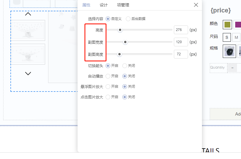 Product details page: How to adjust the size of the sub-picture for the vertical slideshow?