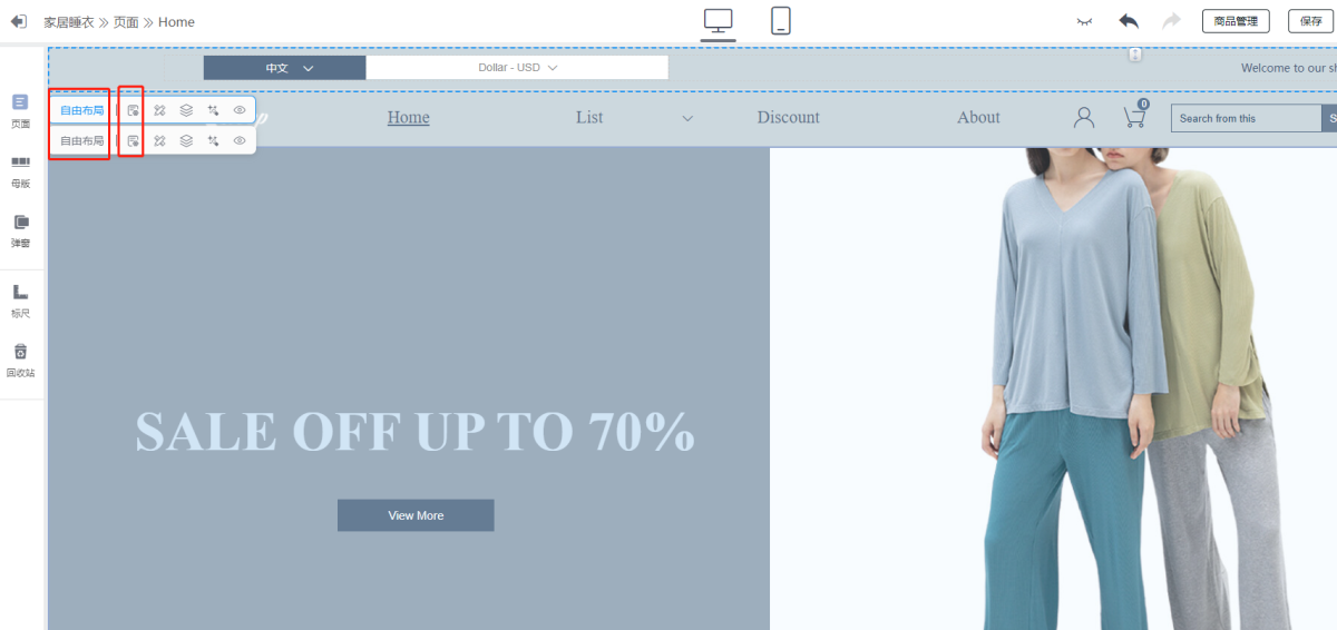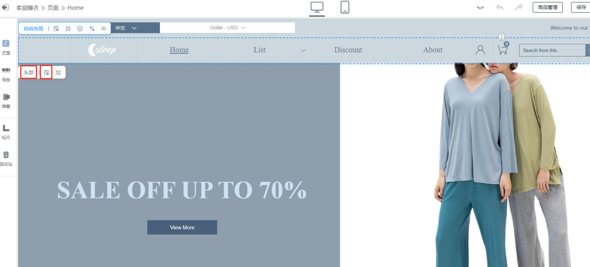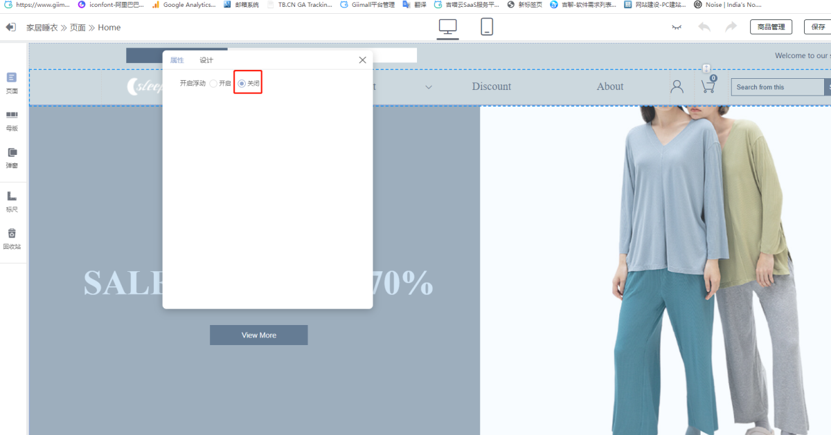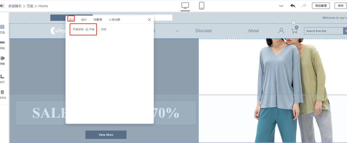 A: 1) When there are more than two free layouts in the header, turn off the header floating: header - properties - off (open floating), as shown in the figure